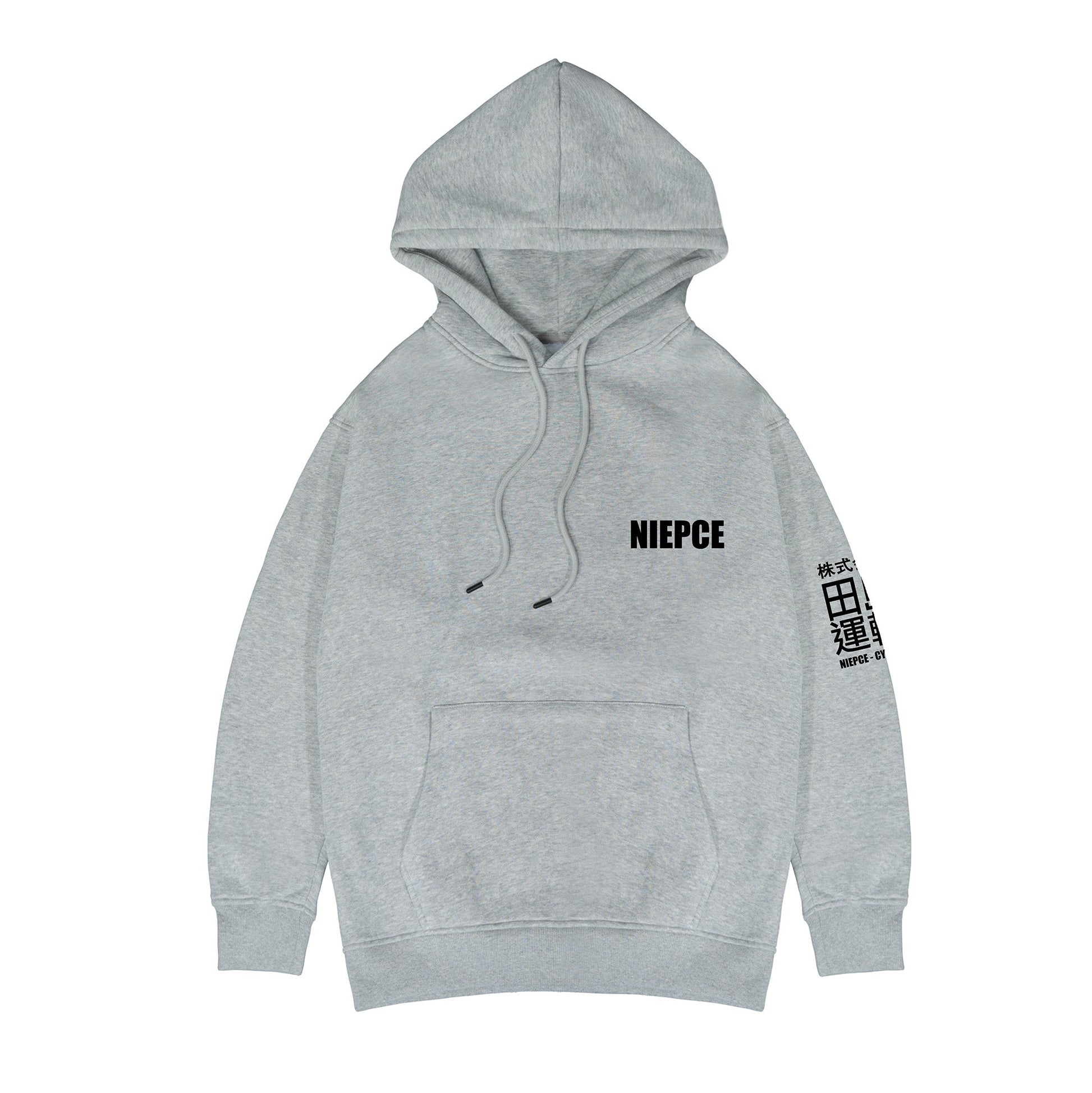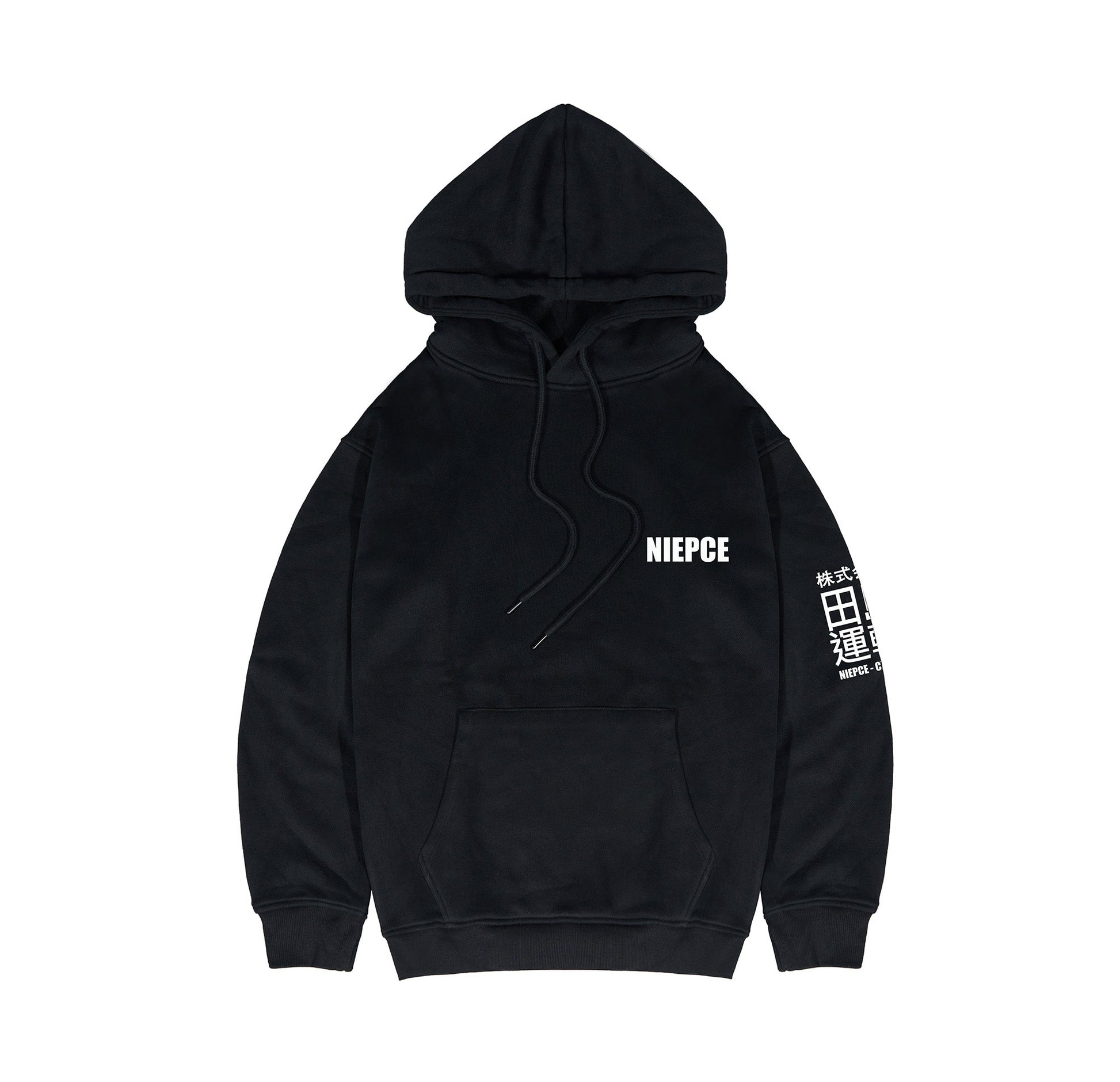 - Back side features a screen print Japanese kanji design translating to "Not Evil" and a yin yang tiger and dragon with a box logo Niepce graphic on the bottom